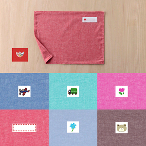 裏なしのひとえ額縁仕立て。氏名票は裏についています。縦35cm横50cm。 同柄でサイズ違いのランチョンマット 氏名票(名札)が最初から縫い付けてありますので、 あとはお