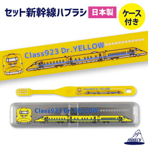 新幹線のケース付歯ブラシセット 923系ドクターイエロー柄 【商品特徴】 ・ケース付なので、保育園・幼稚園・学校・旅行に便利! ・日本製 【材質】 柄:PET樹脂 毛:ナイロン 毛の硬さ:ふつう ケース:スチロール樹脂...