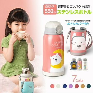 2way 直飲み 入園入学準備に!2way カバー付き 保温 保冷 ワンタッチ 入園 入学 赤ちゃん こども 男の子 子供用 幼稚園 幼児 保育園 女の子 魔法瓶 恐竜 肩掛け キッズボトル 子供