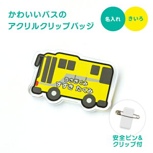 お子様の登所・通園・通学のバッグに最適なかわいいバスのクリップバッジが登場!裏面に安全ピンとクリップがついているので用途に合わせて2通りの使い方ができます。名入れ対応なので、リュックやバッグはもちろん、エプロンやお洋服