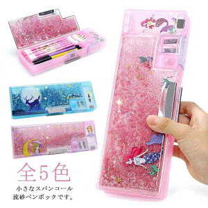 小さなスパンコール流砂ペンボックです。キラキラのスパンコール入れたデザインでおしゃれで美しい。鉛筆削り付き。表側には、細めから太めの鉛筆、丸軸・三角軸・六角軸どのタイプの鉛筆にも対応している、5本差しホルダー付です。大