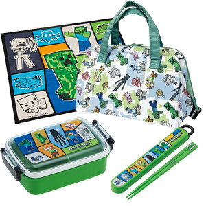 マインクラフトのランチ4点セットです。 クリーパー エンダーマンなどゲームに登場するキャラクターがたくさん描かれていてかっこいいですよ♪ 【セット内容】 ■お弁当箱(450ml)(25) サイズ:横1...