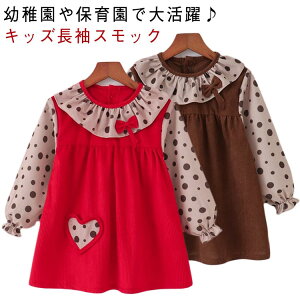 80-120cm!洗濯しやすい・汚れに強いキッズスモックお洋服のような可愛いデザインの長袖スモック、女の子が大好きに間違いなし。可愛いデザイン、まるでおしゃれなブラウス。外出時恥ずかしくないおしゃれにスモックを着用できます。長
