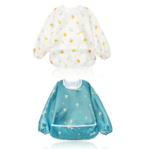 :Little Dimsum お食事エプロン長袖 袖付きエプロン ベビー 食事用 防水エプロン 離乳食 長袖 ベビーエプロン 赤ちゃん 防水 スモック保育園用 幼稚園用6-36ヶ月(2枚セット)(ぞう