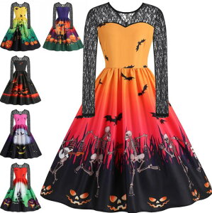 商品名 レディースレトロワンピース ハロウイン元素プリント 長袖 色 写真色 内容 ワンピース サイズ S バスト90 ウエスト70 袖丈56 着丈105 M バスト95 ウエスト75 袖丈57 着丈106 L バスト100 ウエスト...