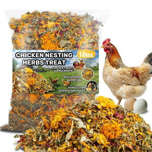 ?解焦? どこでも栄養補給?鶏舎、巣箱、敷料、給餌器、砂浴び場などに撒くだけで、鶏はいつでもハーブをついばみ、自然に栄養を摂取できます。おやつや飼料の補助として最適です。 厳選された天然素材?バジル、タンポポ、カレンデュラ、