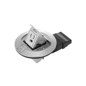 す。 【仕様】 ●アップコン ●フリーアクセスフロア用 ●低床用 ●形状:丸型 ●材質:アルミ ●接地2P抜け止めコンセント ●定格:15A125V ●送り端子付 ●開口