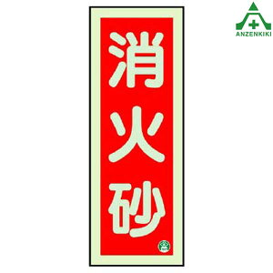 消防標識 表示:消火砂 メーカー品番:825-11B サイズ:250×90×1.2mm厚 材質:硬質蓄光板 取付仕様:両面テープ付 JIS Z 9107(安...