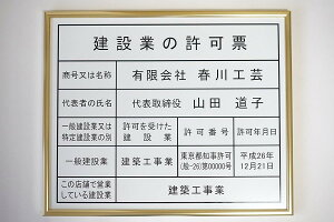 額 建設業の許可票用 ◯ベースサイズ 約H392×W508mm アルミ複合板t=3mm 用 ◯カラー シルバー/ゴールド(選択してください) ◯額縁サイズ 約H415×W530mm 厚み 約23mm ◯材質...
