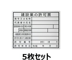 油性ペンで書き込みできるタイプです。●材質:PP●サイズ:400×500mm、径3φmm穴×4隅●表示内容:『建設業の許可票』●仕様等:油性ペンで書き込めるタイプ●内容量:5枚セット