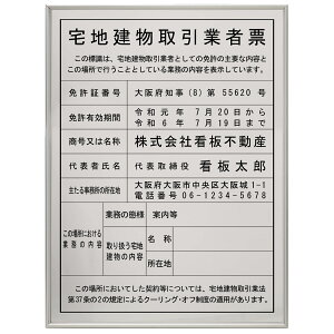 本体サイズ(mm):横450×縦350×厚さ5mmアクリル板【業者票看板の法定サイズに遵守!】 材質:■表板:5mm高透明アクリル板 ■裏板:1mm銀ステンレス板 備考:その他、金ステンレス、黒ステンレス