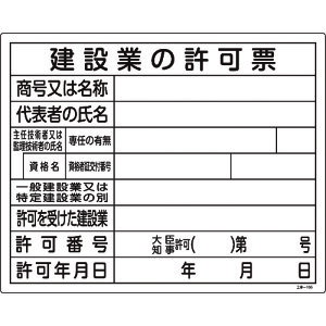 ブランド:緑十字/メーカー:(株)日本緑十字社/緑十字 工事関係標識(法令許可票) 建設業の許可票 工事−105 400×500mm エンビ