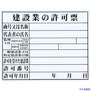 法令許可票「建設業の許可票」<HK-1 (FM-6)> 〔品番:HK1〕[ 注番:7357206]特長●建築現場での設置が義務付けられています。用途●建築現場の管理。仕様●表示内容:建設業の許可票●取付仕様:穴4箇所...
