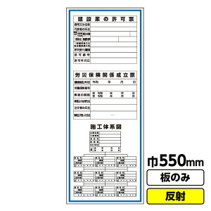メーカー:日本緑十字社 品番:130105 建設業法等により、現場への掲示が義務付けられている標識です。