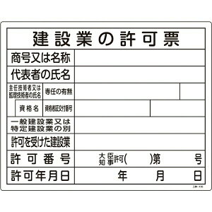 【仕様】 ●サイズ:400×500mm ●建設業の許可表 ●建設業の許可票 【型番】HK-1 / HK1 【商品コード】7357206 ※お問い合わ...