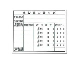 メーカー:安全興業(株) (配送料金表を必ずご確認ください) ▼送料詳細▼ 法令許可票 建設業の許可票