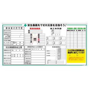 m 材質ポリセームポリセーム製なので軽量で柔らかく貼り付け場所を選びません。この標識には、「建設業の許可票」「労災保険関係成立票」「緊急時連絡表」「建築基準法による確認済証」「施工体系図」「現場組