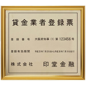 規定サイズ(W435mm×H360mm)の建設業の許可票です 板面は丈夫なアルミ複合板(ブラック)で作成しています 額縁と文字のカッティングシートのお色がゴールドのため高級感があります 文字は印刷ではなくカッティング仕上げのため...