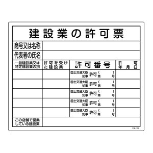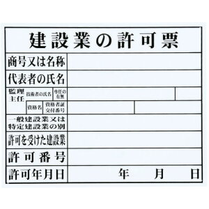 ことで、工事・建設作業等に伴う許認可を明示します。【仕様】●型番:130105 ●表示内容:建設業の許可票 ●取付仕様:穴ナシ(加工フリー) ●縦(mm):400 ●横(mm):500 ●厚さ(mm):1...