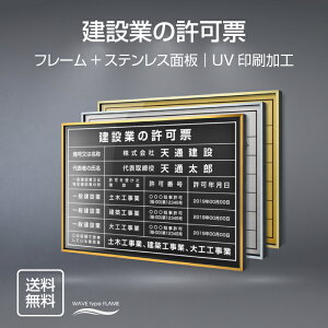 建設業の許可票 法定サイズの建設業の許可票 許可票サイン 許可票看板 建設業の許可票事務所用 建設業の許可票プレート 業者プレート オシャレな建設業の許可票 額入り建設業の許可票<br...