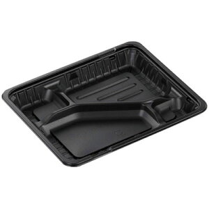 容器内の仕切りは、太くて高さがあり、機能的で美しく見せる弁当容器です。 外嵌合蓋「CR−5」は別売です。 ■商品仕様 商品サイズ:外寸:208×208×34mm 材質:MSD(マルチソリッド)...