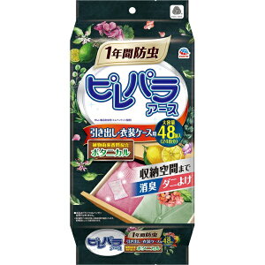 ●たっぷり24段使える: 大容量48個入りなので、引き出し24段分たっぷり使えます。●ボタニカルの香り広がる: さわやかで清潔感のあるボタニカルの香りが続きます。植物由来香料配合です。●1年間防虫※防虫効果は...