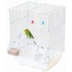 小型 手乗り 小鳥 ケージ ゲージ (高さ39×幅28.5×奥行22cm) 止まり木 ブランコ 引き出しトレイ エサ入れ付き 文鳥 カナリア セキセイインコ (ホワイト) ?文鳥やカナリアなどのフィンチか...