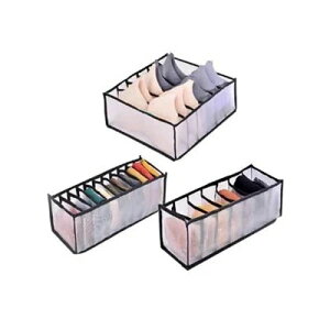 メッシュ素材の収納ボックス3点セット。仕切り付きで下着やパンツを整理整頓。折りたたみ可能で収納に便利。
