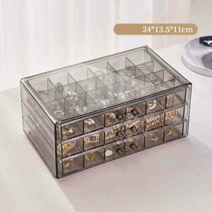 透明長さ22 cm 幅13 cm 高さ 10.5 cm 3段 引き出し 透明 クリア 指輪 ネックレス ピアス イヤリング ブレスレット 大容量 仕切り付き