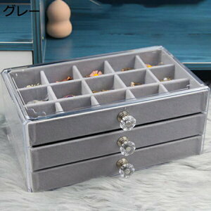 色:グレー い。パッケージ内容:1×ジュエリーディスプレイボックス。 【アクセサリーボックス 引き出し 3段】3段の引き出しはスムーズに開閉でき、朝の忙しい時間でもストレスなくアクセサリーを選べます。このジュエ...