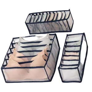 引き出しの中でバラバラになりがちな下着類をすっきり整理整頓できる下着専用収納ボックス。使い分けできる3サイズセット!奥行きと高さは共通なので引き出しにもフィットします。メッシュで中身がわかりやすい!メッシュ生地なので透