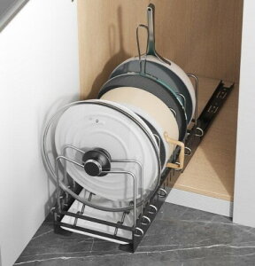 鍋やフライパンを深引き出しに収納できるスタンドです。鍋・フライパン・鍋ふたを立てて収納することで見やすく、サッと取り出すことができます。持ち手が上部にくるので、フライパンなどの取り出しがラクです。仕切りの位置は...