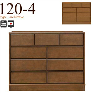 特 徴 幅120cm4段右列に小引き出し付き 前面は艶があるエナメル塗装のローチェストです。 長引き出しはスライドレール付き(小引き出しはレールなし) 国産大川家具です 商品サイズ 本体: 幅 119.5×奥行...