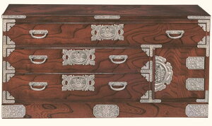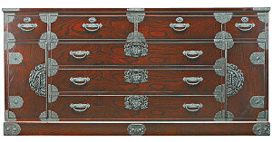 桐箪笥の普遍的なデザインを継承しつつ深みのある朱×漆黒の存在感を演出。 重厚な桐箪笥に絶妙にマッチした直線的デザインが美しい細く横に伸びた引手は持ちやすく、ほんのり冷たさを感じる鉄製の違和感が心地いい。 ダークカラーの本体に深みのある...