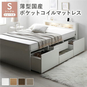 一人暮らし コンパクト ショート丈 SS 小さい ミニ 省スペース マットレス付き チェストベッド ミドル ベッド下収納 引き出し付き 大容量 宮付き ヘッドボード 枕元 棚 ラック 携帯置き ティッシュ置き...