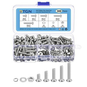 [マシンスクリュー] パッケージにはM4x8/12/16/20/25mmの銀色のパンヘッドマシンスクリューキットが300個含まれています。パンヘッドスクリューには、マッチングするナットとワッシャーが付属しており、異なるサイズと十分な数...