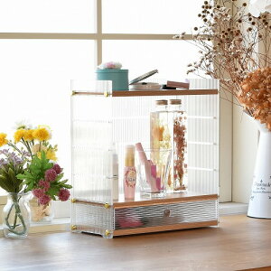 指紋がつきにくく、ほんのり透けて中身がわかるアクリルパネルで、見た目も機能もスマート。文房具やメイク道具、キッチン小物などの細々したものをおしゃれにまとめて、すっきり整った空間を演出できます。 商品サイズ:W320×D155×H340mm