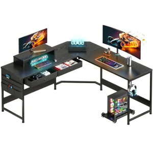 AODK ゲーミングデスク 引き出し付き パソコンデスク コンセント付き l字デスク デスク 机 幅135/155 pcデスク 棚付き コーナーデスク 収納 オフィスデスク 仕事用 在宅勤務 組立簡単