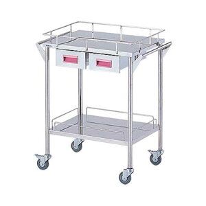 ハンドルの標準装備により、操作性に優れています。●天板及び中棚には共に転落防止用の枠付きです。●引き出し付きで小物の収納に便利です。●材質:ステンレス