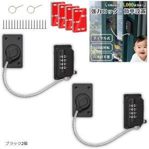 ju3i46u商品名ドアロック 後付け 穴あけ不要 ダイヤル式 強力ワイヤー 360度回転 引き戸 室内ドア 鍵 両面テープ ネジ8本セットブランドGRHONCカラーブラック2個「年間1.5万個出荷。強力な後付けドア...