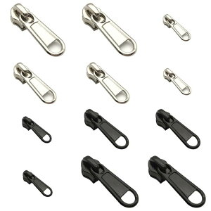 SANJAOYEE ファスナー 引き手 ファスナー 修理 スライダー 12個セット 3サイズ 金属製 引っ張りスライダー 取換 耐久性のあるジッパーヘッド 取り外し可能で再利用可能なジッパー交換スライダ【サイズ多...
