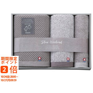 ギフト対応■商品名:スローウィークエンド バス・フェイス・ハンドタオルセット■商品:コンパクトバスタオル(約47×103cm)・フェイスタオル(約33×75cm)・ハンドタオル(約33×34cm)各1...