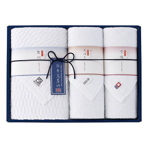 ギフト対応【送料無料】日本を代表するタオルの産地、今治・泉州・三重のタオルをセット。■商品名:新日本名産地 タオルセット■商品:泉州産バスタオル(約60×110cm)・今治産フェイスタオル(約34×75cm)...