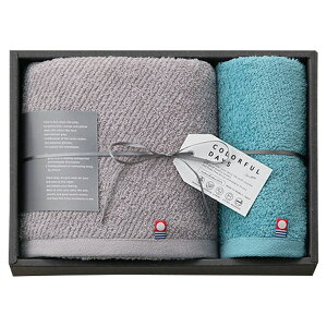 ギフト対応【送料無料】■商品名:カラフルデイズ バス・ハンドタオルセット ブルー■商品:バスタオル(約60×110cm)・ハンドタオル(約33×33cm)各1・日本製■材質:綿100%■箱:約28×19.7×6.9cm...