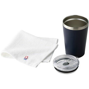 カップインタンブラー & 今治タオル ネイビー セット AM-1742●商品内容/真空二重構造タンブラー(直径約8.8×12.5cm・容量約400ml)・ウオッシュタオル(約34×30cm)×各1●素...