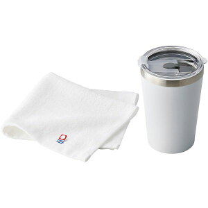 カップインタンブラー & 今治タオル ホワイト セット AM-1741●商品内容/真空二重構造タンブラー(直径約8.8×12.5cm・容量約400ml)・ウオッシュタオル(約34×30cm)×各1●素...