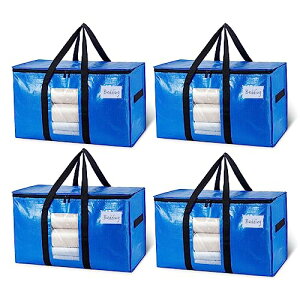 サイズ:4枚入◆商品名:TAILI 大きいバッグ 布団収納袋 引越しバッグ 収納ケース 特大容量 透明窓 持ち手付き 衣装ケース 洋服 羽毛布団 防塵防水 折りたたみ式 カバン 省スペース 引っ越し 背負える...