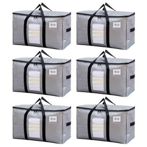 100L大容量、収納力抜群:抜群な特大引越しバッグの寸法:70 cm 35 cm 42 cm、6 パック。 両端のジッパーと中央に大きな開口部があるため、衣類、おもちゃ、靴、タオル、必需品、枕、寝具、シーツ...
