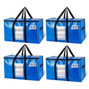 100L大容量、収納力抜群:抜群な特大引越しバッグの寸法:70 cm 35 cm 42 cm、4 パック。 両端のジッパーと中央に大きな開口部があるため、衣類、おもちゃ、靴、タオル、必需品、枕、寝具、シーツ...