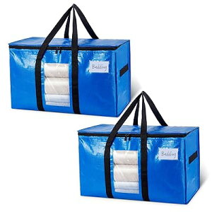 100L大容量、収納力抜群:抜群な特大引越しバッグの寸法:70 cm 35 cm 42 cm、2 パック。 両端のジッパーと中央に大きな開口部があるため、衣類、おもちゃ、靴、タオル、必需品、枕、寝具、シーツ...